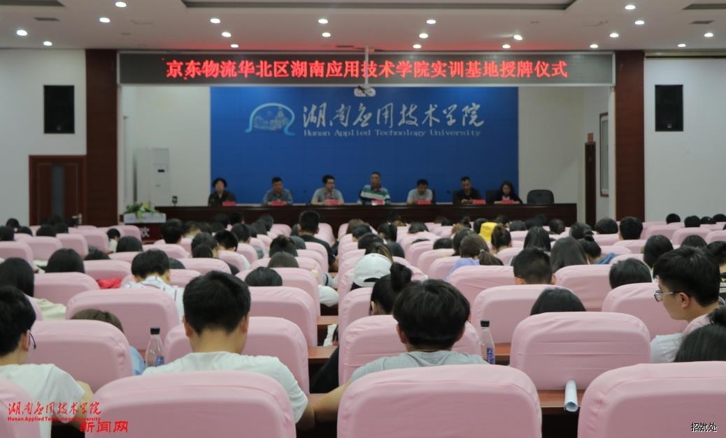 4月8日晚上,我校校企合作实训基地授牌仪式在东校区广言堂报告厅举行,京东物流华北区人力资源经理岳晨,学校副校长李新华,校长助理、招生就业处处长汪金良,经济管理学院院长胡承德,以及物流管理学生参加了授牌仪式。