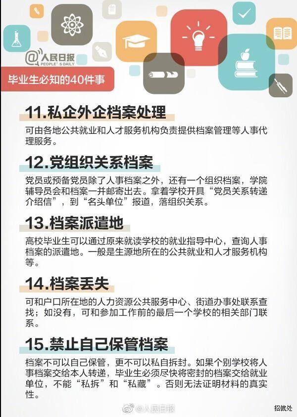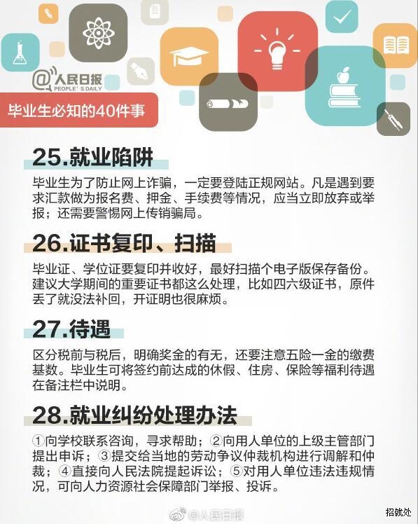 毕业生必知的40件事 来 源:本站 作 者: 日 期:2019-05-31 08:46:07 点击: 内容简介:毕业生必知的40件事 上一篇:毕业生就业安全防范 下一篇:大学生与法——《三方就业协议书》的真面目