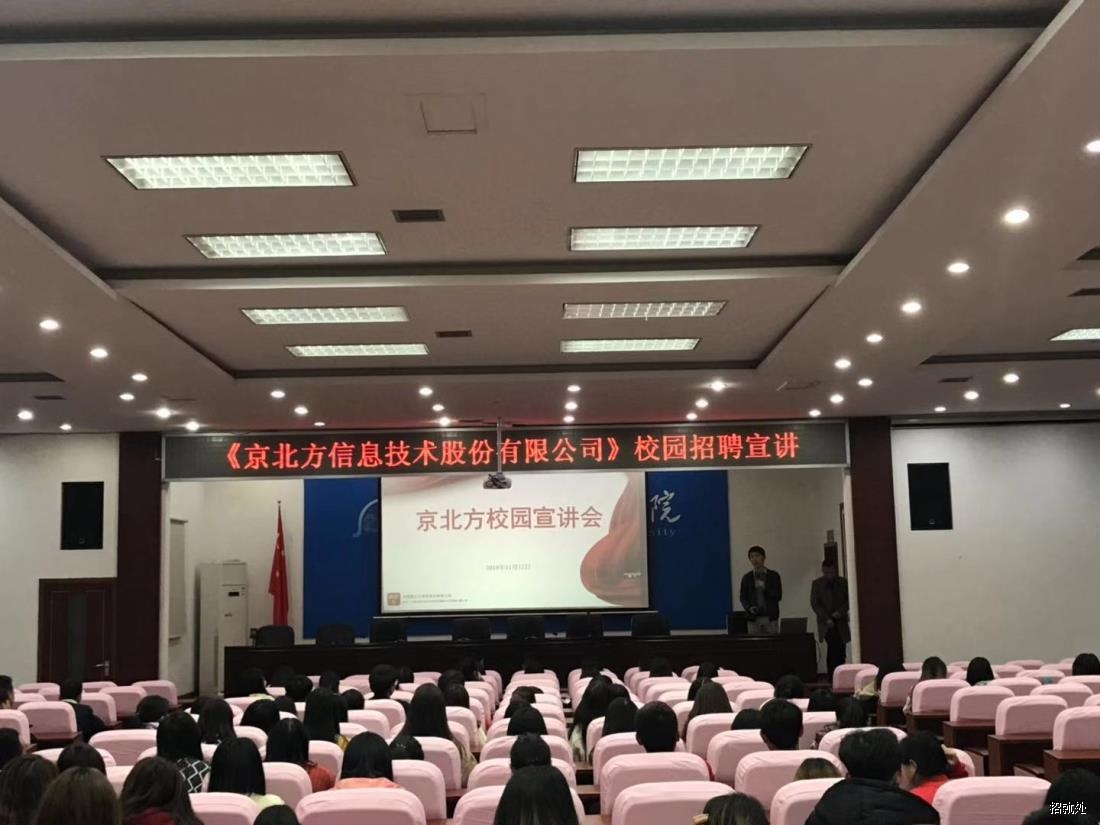 11月12日,深圳兆驰集团、京北方信息技术有限公司二家企业,在东校区言堂二楼对我校2019届毕业生举行了宣讲会,就业处张光伏副处长及部分辅导员老师参加。企业宣讲人分别对自己公司的发展史,公司规模、企业优势、工作岗位、工作环境、薪资待遇以及职业发展,晋升道路等方面的情况进行了介绍,并针对同学们提出的问题进行了耐心细致的解答。会后,与会学生纷纷表示他们正在为即将到来的招聘会做准备,以便及时选择好就业路线,顺利开始顶岗实习生活。