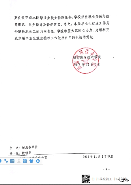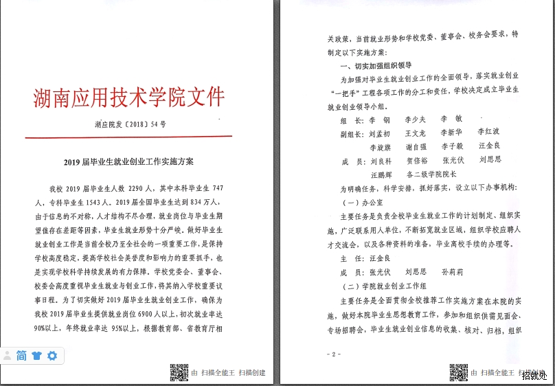 2019届毕业生就业创业工作实施方案 来 源:本站 作 者: 日 期:2018-12-18 04:13:44 点击: 内容简介:湖应院发〔2018〕54号 2019届毕业生就业创业工作实施方案 上一篇:就业创业工作先进集体与先进个人评选办法 下一篇:湖南省人民政府关于印发《湖南省进一步促进就业工作二十条措施》的通知