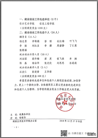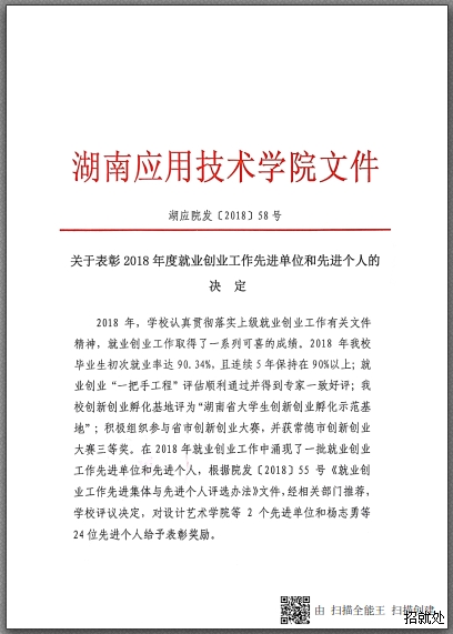 关于表彰2018年度就业创业工作先进单位和先进个人的决定 来 源:本站 作 者: 日 期:2018-12-28 10:35:15 点击: 内容简介:关于表彰2018年度就业创业工作先进单位和先进个人的决定 上一篇:关于调整学生奖励评审委员会的通知 下一篇:2019届优秀毕业生和创新创业优秀毕业生拟推荐名单公示